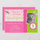 Bjud in dina gäster på ett sött och roligt sätt till din lilla enings födelsedagsfest med denna helt personliga födelsedagsinbjudan. Den har en rosa och limegrön bakgrund med snygga små trollsländor.