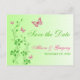 Detta varma rosa och vårgröna blomster-spara-datum vykort har SIMULERADE rosa och gröna fjärilar och blommor som matchar den bröllopsinbjudan som visas nedan. Om du behöver andra matchande föremål i denna design, vänligen maila din förfrågan till niteowlstudio@gmail.com.