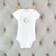 Sött baby bodysuit med handritad krans av hjärtan och fjärilar i färger av vattenmelon - grönt och rosa med anpassningsbar text i mitten.
