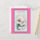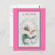 Absolut adminstrativ liten flicka i en vintage grönt jackar med vit päls trim och vit päls hatt. Hon har hamnat som snö om hon hamnar på efterkälken. Hon har rött och grönt julblommor som dekorerar hatten. "Hej, God jul" överst. Rosa och grönt gräns.