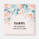 En födelsedag spara datum magneter med en elegant blommigt gräns. Blommor och löv i rosa och grönt.