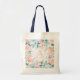 Tot väskan med en elegant blommigt gräns. Blommor och löv i rosa och grönt.