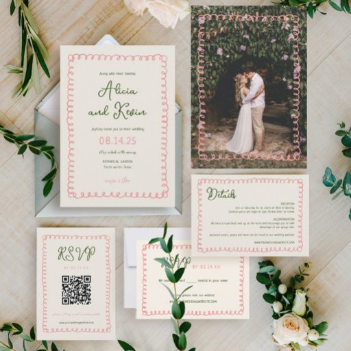 Rosa och Grönt Färgruta Bröllop Spara Datumet