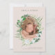 Fin rosa och grönaktig lageraffär lämnar lodrät av utandningfoto med typografi av elegant. Anpassa till nyfödda baby födelsestatus, födelsedatum, längd och vikt samt kort-meddelande från nya föräldrar. Ytterligare utrymme för foto på baksidan.
