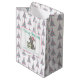 Personlig God jul presentväska. Den här söta helgdag presentväskan kan anpassas till ditt företag namn och har en klassisk juldesign i en rosa och grönt färg palett.