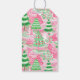Rosa och Grönt Julgranar Presentetikett