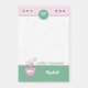 Rosa och grönt kaffe kopp med namn post-it block