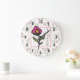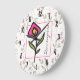 En klocka med en skräddarsydd rosa från namn och söt i ett kvadrat ram med en rosa gräns. Bakgrunden är ett mönster med vilda blommor från hand plockade rosa med långa gröntar och löv på en gshell-vit färgad. Rosa cirklar och spritar dekorerar också designen. Utformning av blommigt för fysikalisk och söt.