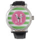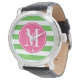 Rosa och Grönt Rand Anpassningsbar Armbandsur