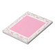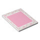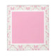 Det här anteckningsblocket har en design med en ljus rosa och blek grönt-dämpare gräns. Mittkvadraten är en koordinerande rosa av bleken.