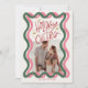 Det här söta och moderna "helgdag cheers"-julkortet innehåller ditt helgdag som utformats av en rosa och grönt som vågigt ramar. Baksidan har ett foto och ett meddelande på gröntens bakgrund. Anpassa den efter dina behov. Du hittar matchande produkter i min butik.