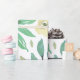 Coola modern vattenfärgers pastellfärgers rosa och gula blommor med grönt blad, sömlöst mönster med utbytbar vit bakgrund färg.