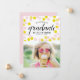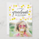 Grattis till examen! Meddela din examen till familj och vänner med detta anpassningsbara fotoexamen-kort. Det har modern kalligrafi och rosa och gula konfettipunkter. Anpassa det genom att lägga till dina detaljer. Detta söta fotoexamen-kort finns också i andra kartongtyper och färger.