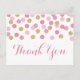 Använd våra rosa och gula glitter polka prick tack-kort för att tacka dina gäster för din baby shower eller fest. Om du hellre vill skriva ett handskrivet meddelande på baksidan kan du enkelt ta bort texten i dessa fält innan du lägger till korten i din varukorg. Detta rosa och guld tack-kort koordinerar perfekt med våra matchande glitter polka prick inbjudningar och baby shower kollektion, sålda separat.