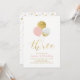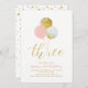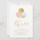 Rosa och Guld-ballonger | Flicka 3:e födelsedagen Inbjudningar