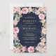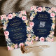 Rosa och Guld Blommigt QR-kod för marinblå Bröllop Inbjudningar