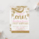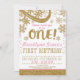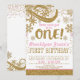 Rosa och guld glitter 1-års födelsedag vinter ett inbjudningar