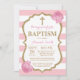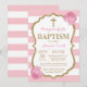 Rosa och guld glitter dop inbjudan. Flick dop. Första kommunion. Dop. Barn dedikation. Rosa och vita ränder. Rosa blommor. För ytterligare anpassning, klicka på "Anpassa" knappen och använd vårt designverktyg för att ändra denna mall.