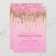 Rosa och Guld Glitter Drivrutiner på födelsedagen Inbjudningar