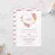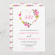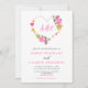 Den här söta och visuella bröllopsinbjudan har vattenfärgshjärtan i rosa och guld med blommor. Texten kombinerar handskript och serif typsnitt för en snyggt och ett modernt utseende. Det här är perfekt för vår eller sommar bröllop.