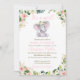 Elva barnduschinbjudningar till en söt flicka. De här inbjudningarna har vattenfärgade blommigtar med en söt rosa elefant. De innehåller också guld-accenter.