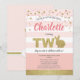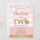 Rosa och guld och guld söt kanintema-fest inbjudan för lilla flickans 2-årsdag.