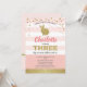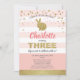 Rosa och guld kaninflicka 3-års inbjudan