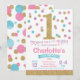 Rosa, Lilac, Mint & Guld Polka inbjuds på första födelsedag, ett perfekt sätt att meddela ditt barns första födelsedag i Party.