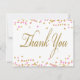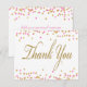 Rosa och guld tack-kort med rosa och guld konfetti och elegant guld tack-skrift. Du kan enkelt anpassa dessa rosa och guld platta tack-kort genom att helt enkelt lägga till ditt meddelande i den teckensnittsstil och formulering du väljer. Du kan också ändra bakgrundsfärgen. Detta är en tryckt design utan verklig glitter, konfetti, etc.