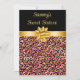 Den här eleganten och den glamorösa sweet sixteen-födelsedagsinbjudan har en guld-båge och ett band med rosa och guld leopard-prickar. Texten kombinerar handskript och modernt sans serif typsnitt för ett klassligt och sofistikerat utseende.