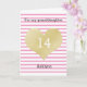 Ett trendig rosa och guld 14-årskort för barndotter. Du kan enkelt anpassa åldern och namn. Underdotterns födelsedagskalender kan också vara personlig om du vill. Baksidan av det här guld-hjärtfödelsedagskortet har också guld hjärta och rosa rand med ett grattis på födelsedagen-meddelande. En unik födelsedagskalender för henne.