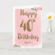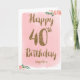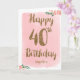Rosa och Guld Lycklig 40:e födelsedagen Kort