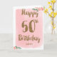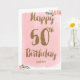 Rosa och Guld Lycklig 50:e födelsedagskortet Kort