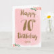 Rosa och Guld Lycklig 70:e födelsedagskortet Kort