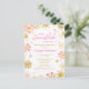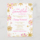 Den här eleganten och den glamorösa inbjudan på vykort har vattenfärgen rosa och guld faux glitter snöflingor och gnistor på vit bakgrund. Det är perfekt för en vinterdusch eller en julgrusdusch.