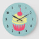 Rosa och Gult Cupkaka med Cherry överst Stor Klocka