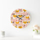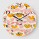 Rosa och Gult Löv Design Modern Monogram Stor Klocka