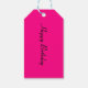 En rosa och gult abstrakt spiral som går samman i ett blått centrum. Anpassadet på den omvända texten lyder "Grattis på födelsedagen".