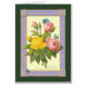 Rosa- och gul ros-blommor, botaniska konstverk av berömden Pierre Redoute med blå fjärilar. Framad med inslag från antika manuskript. Blommorna är upptagna på konstverket, Persian gul ros (rosa Lutea) och rosa tea ro (rosa indica). Framad med inslag från antika manuskript.