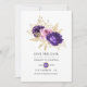 Elegant rosa och lila blomma bröllop bevara datum-kort med falska guld folie accenter och en elegant gitter bakgrund som kan anpassas till din evenemangspecifikationer.