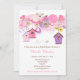 Rosa och Lila Blommigt Fågelhus Möhippa Inbjudningar