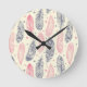 Rosa och Lila Etniska Feather Mönster Rund Klocka
