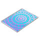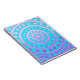 Rosa och lila ombre-design med glödande cirklar och prickar och turkos bakgrund