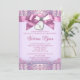 Flickor rosa och lila första kommunion inbjudan med snygg rosa rosett och hjärtkors på en vacker rosa och lila virvlande bakgrund. Du kan enkelt anpassa denna vackra rosa och lila första kommunion inbjudan för ditt evenemang genom att lägga till dina uppgifter i den teckensnittsstil och färg, och formulering du väljer. Detta är en tryckt design med inga riktiga juveler, rosetter osv.