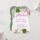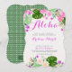 Aloha! Kom bort till paradiset för detta tropiska inbjudningskort för möhippan med tropiska blommor av rosa och lila och spola gröntens löv. Baksida till Rattan.