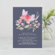 Rosa och marin Blommigt Vattenfärg Bröllop Inbjudningar