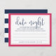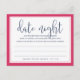 Låt möhippans gäster sina favoritdejtnattsidéer för paret lycklig, med dessa söta kort. Chic, rosa och marin design har "datagnaten" i den moderna kalligrafiskript och en kort-dikt som instruerar gästerna vad de ska göra. Anpassa med brudens namn och duschdatum, och ställe en stack vid ingången till evenemanget, skicka runt dem eller lämna en vid varje ställe-inställning. Gör en vacker keepy för bruden och ett underbart alternativ till datavatten burk!