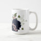 Romantisk vacker rosa och marinblå blommor med gröna blad botanisk kaffemugg.