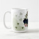 Romantiska vackra rosa och marinblå blommor med gröna blad botanisk kaffekopp.