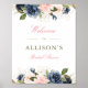 rosa och marinblå blomsterbröllopsfest välkomstsky poster